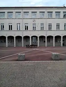 En [7], les soldats allemands lancent des représailles contre la ville d'Oyonnax : la ville est bombardée et mitraillée. Un des bombardements touche les bâtiments de l'école le , qui sont en partie détruits. Aujourd'hui, dans la cour du lycée, des lignes de pavés blancs rayonnent autour de l'endroit où l'obus est tombé[3]. Le , 120 hommes de 17 à 35 ans sont réunis Place des Écoles, aujourd’hui Place des Déportés en leur souvenir, devant l'école. 72 d'entre eux seront déportés au camp de concentration de Neuengamme. Aujourd'hui, devant le lycée, se trouve une stèle commémorant la rafle du .