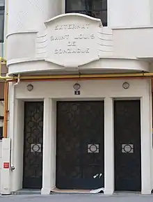 À l'initiative de son directeur, le père François Berlier de Vauplane, l'établissement est reconstruit entre 1933 et 1935 par l'architecte Henri Viollet[13]. Au sein de ce nouvel ensemble de style Art déco[14], se trouve notamment une chapelle de 1 300 places[15] réalisée en béton armé, dont le chœur est décoré d'une fresque représentant les principaux épisodes de la vie de saint Louis de Gonzague. Œuvre d'Henri de Maistre, directeur des Ateliers d'art sacré, cette fresque est inscrite en 1993 à l'inventaire supplémentaire des monuments historiques[16]. En 1935, à l'inauguration de la chapelle, huit plaques de marbre sont apposées en mémoire des anciens élèves morts pour la France lors de la Première Guerre mondiale ; sont également gravés les noms d'anciens élèves du collège jésuite de la rue de Madrid, entre-temps fermé[17].