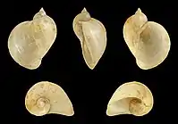 R. auricularia se différencie d'autres limnées par une coquille très arrondie et une pointe acérée.