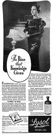 Une publicité pour Lysol de 1935, qui a également été utilisé à l'époque comme un produit d'hygiène féminine