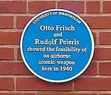 Le mémorandum de Frisch et Peierls, daté de mars 1940 et écrit par Otto Frisch et Rudolf Peierls, a démontré la faisabilité d'une bombe A transportable par avion[1].
