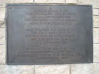 - « Le musée national sud-africain inauguré en 1986 par Pieter Botha ».