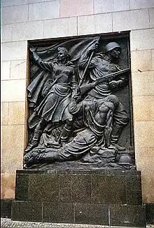 Devant l'obélisque se trouve le monument principal, une statue de la Mère Patrie russe qui pleure son fils mort. Sur la base de l'obélisque, fait de blocs de porphyre noir, se trouvent 42 plaques en bronze aux noms des officiers décédés. Le complexe comprend également une longue citation de Joseph Staline.