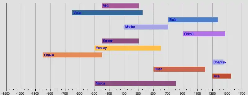 Sur la côte nord, le style régional Chavín fut suivi successivement par les productions Salinar et Gallinazo. Salinar initialement défini par l'archéologue Rafael Larco Hoyle (1944) est une culture qui s'est développée dans la zone côtière des départements actuels d'Áncash et de La Libertad entre 500 av. J.-C. et 300 apr. J.-C. alors que la culture Virú, également appelée Gallinazo, s'est développée sur la côte nord entre l'an 200 av. J.-C. et l'an 350 de notre ère.