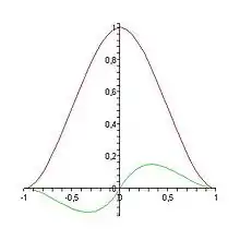La plus simple est l'emploi des polynômes de Lagrange. Dans cette méthode les fonctions de base valent 1 à un nœud du maillage et 0 à tous les autres. La fonction de base i est alors la fonction valant 1 au nœud i et 0 sur les autres nœuds et qui est polynomiale sur chaque élément. Un exemple de telles fonctions est représenté en dimension 1 à côté. Il y a autant de fonctions de base par élément que de nombre de nœuds.