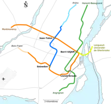 |  | Ligne bleue (5) | Snowdon | ↔ | Saint-Michel (Galeries-D'Anjou, en 2029) | 1986 | 1988 | 9,7 | 12 (17, en 2029) | 3–5 minutes | 5–10 minutes |
