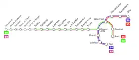 | Lignes | Parcours | Mise en service | Nombre de stations | ||