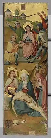 - Retable de Richterich[28]. Provient de l'église Saint-Martin de Richterich, un quartier d'Aix-la-Chapelle. Dispersé.