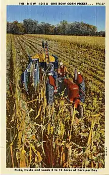 Lorsque les Européens exploraient les Amériques, le maïs était donc déjà cultivé du nord au sud du continent depuis les rives du Saint-Laurent (Canada) à celles du Rio de la Plata (Argentine). Le maïs a été vu par les Européens pour la première fois par Christophe Colomb en 1492 à Cuba[13]. Magellan le trouva à Rio de Janeiro en 1520. Jacques Cartier relate en 1534 que « Semblablement croit auſſi ’en ce païs du mil gros comme pois , pareil à celui qui croit au Breſil dont ilz mangét au lieu de pain, & y en avoient abondance, & l'appellent en leur langue Kapaige » ; en 1535, il écrit que Hochelaga, la future Montréal, se trouvait au milieu de champs de maïs, qu’il comparait à du « millet du Brésil ». Le missionnaire Gabriel Sagard fait l'éloge du blé d'Inde en Huronie :