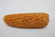 Le fruit d'un plant de maïs doux est le grain, qui est pour les botanistes un caryopse.
