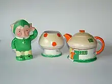 En 1926, la société Shelley Potteries sollicite Attwell pour illustrer des porcelaines pour enfants, à la suite du succès des porcelaines décorées par Hilda Cowham (en). Les six premiers dessins d'Attwell représentent des scènes impliquant des enfants, des animaux et de petits elfes verts surnommés « Boo Boos »[8],[9]. Attwell poursuit sa production de décors pour les articles Shelley jusque dans les années 1960.