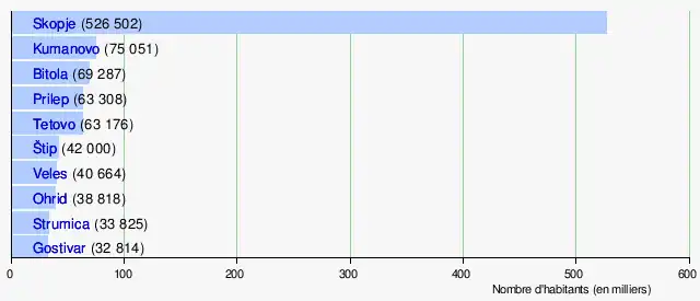 Population des dix villes de Macédoine du Nord les plus peuplées (2021)[46]