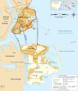 Historiquement, les Portugais construirent des séminaires et léproserie sur les trois îles situées à l’ouest de Macao, Taipa et Coloane, respectivement appelées Lapa, Dom João et Montanha[alpha 7] mais cela n’a jamais été reconnu comme faisant partie du territoire.