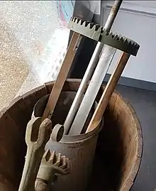 Les anciennes turbines à glace étaient en bois est composées de deux cuves : une cuve en métal où on mettait la préparation à crème glacée, et une autre cuve remplie de morceaux de glace et de sel dans laquelle baignait la cuve en métal. Un système de batteur permettait de faire l'échange de chaleur entre le mix à glace et les glaçons.