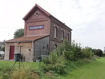 De 1874 à 1966, Macquigny a été traversé par la ligne de chemin de fer de Saint-Quentin à Guise. qui passait au nord-est du village près du canal de la Sambre à l'Oise où la gare fut construite.