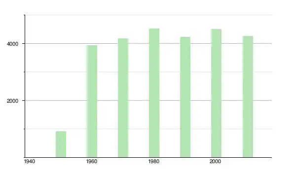 | 1960 | 3 943 | ▲ +330,46 % | |