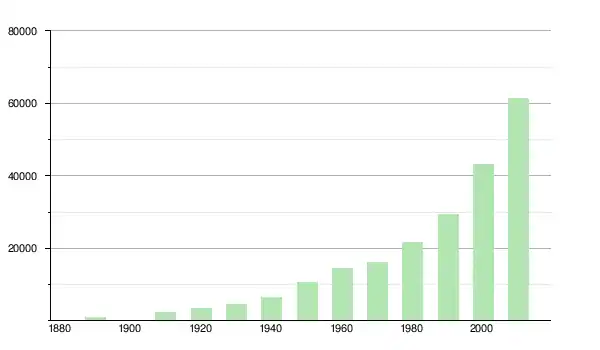 | 1950 | 10 497 | ▲ +62,57 % | |