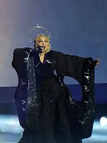 - (en-US) « Madonna takes a stand for Ukraine in London world tour opener », sur Yahoo News, (consulté le )