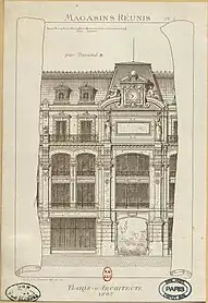 À la fin du XIXe siècle, Eugène Corbin, le fils cadet d'Antoine Corbin, rachète l'édifice et décide d'y installer la première succursale parisienne de sa chaîne de magasins nommée Magasins réunis. Il entreprend alors des travaux de réaménagement dirigés par l'architecte Marcel Oudin, qui fait appel à des artistes de l'Art Nouveau notamment Louis Majorelle, Émile Robert et Édouard Schenck[2]. C'est également dans ce bâtiment que se trouvait l'hôtel Moderne, un hôtel particulier occupé par la famille Corbin[4].