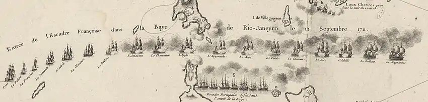 - René Duguay-Trouin, Relation de l'expédition de Rio-Janeiro, par une escadre de vaisseaux du Roy que commandoit Mr. Du Guay-Troüin, en 1712, Paris, Pierre Cot, , 83 p. (lire en ligne).