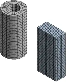 Par contre, ceci n'est possible que pour des formes ayant des contours simples, de type cylindres (au sens large, incluant les prismes). On peut, si nécessaire, diviser un domaine en sous-domaines ayant des formes simples, et donc avoir plusieurs maillages réguliers, ou bien avoir un maillage régulier au cœur du volume, et avoir une « couche » composée de prismes et tétraèdres à proximité de la surface.
