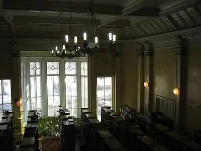 Le bâtiment en bois a été construit dans le style éclectique avec un élégant portique, un porche avec des marches en granit, une tourelle avec une girouette. L'hôtel de ville était le centre d'événements culturels et sociaux.