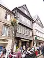 Maison constituée d'un rez-de-chaussée en granit et de trois étages en encorbellement. La façade est ornée de sablières, consoles et poteaux sculptés ou moulurés. Les pans de bois sont revêtus d'ardoises souvent taillées pour former frises et panneaux. Les baies ont conservé leurs anciennes menuiseries[1].