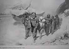 « Mon premier dessin sur la rive avec un groupe d'enfant s'est terminé par un scandale. Les enfants étaient heureux, ayant reçu un sou pour s'être tenus tranquilles. Mais les mères en s'enfuyant étaient offusquées. Elles ont battu leurs enfants et les ont obligé à rendre l'argent reçu. Il n'y a que les haleurs qui ont accepté de poser pour un demi-litre. »