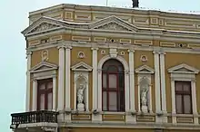 Le bâtiment a été construit à l'angle des rues Masarikova et Gospodar Jevremova[2]. La façade façade d'angle est dotée d'un large portail ouvrant sur l'espace commercial du rez-de-chaussée ; ce portail est surmonté d'un balcon[2]. Cette façade était dominée par un dôme, qui a été détruit pendant la Seconde Guerre mondiale[2]. En revanche quatre statues placées dans des niches, représentant la déesse Flore, ornent les façades à gauche et à droite de la façade angulaire et encadrent une haute fenêtre cintrée[2].