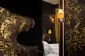 L'hôtel comporte 14 chambres, 6 suites et 2 appartements[15][source insuffisante]. Les décors s’inspirent d’une palette de styles tels que : Napoléon III, Indien, Chinois, Japonais, Empire et XVIIIe siècle français[1],[16],[13]. Chaque chambre porte le nom de courtisane célèbre[16],[2] tel que La Castiglione, La Païva, Liane de Pougy et La Belle Otero. Les chambres sont tissées du fil de plus de 120 références telle que la Manufacture Prelle[pas clair][17].