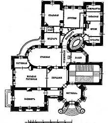 La construction a été financée par de l'argent emprunté[1],[3] et devait servir une fonction résidentielle[4],[5]. Les différents étages, reliés par un ascenseur et des escaliers, constituaient chacun un appartement distinct. Horodetski devait occuper le quatrième niveau, dont la superficie était de 380 m2 environ[4].