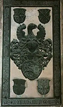 | Blasonnement | d'argent à deux léopards de sable passant l'un sur l'autre |