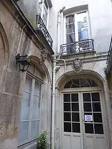 Des caves médiévales subsistent sous le bâtiment du fond. Ce bâtiment qui desservait les appartements de Jean Mariette a également conservé son escalier avec rampe en fer forgé d’origine[2].