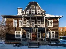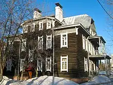 La maison est en bois sur un haut socle en brique, avec un grenier, à l'origine résidentiel, construit dans le style Art Nouveau. La composition volumétrique-spatiale est représentée par un volume compact à deux étages avec une mezzanine. Le bâtiment est de plan rectangulaire avec des volumes saillants de baies vitrées, de balcons et d'un risalit[2].