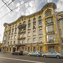 La surface totale du bâtiment est de 6.600 mètres carrés[32]. C'est une construction destinée à être donnée en location à des bourgeois aisés. À l'origine, elle comprenait quatre appartements à chaque étage : deux donnant vers l'avant et deux vers l'arrière. Conçus par la société de commerce et de construction de Moscou, cet immeuble d'habitation devait attirer une clientèle non seulement par l'allure élégante de sa façade, mais aussi par l'aspect somptueux des décorations à l'intérieur des appartements. Les plus prestigieux étaient ceux situés au premier étage en façade. Ils disposaient de plusieurs cheminées, de décorations de majolique multicolores avec pour chaque appartement un dessin particulier, des stucs aux plafonds et des balcons à la française. Plusieurs escaliers de service permettaient un accès séparé pour le personnel de maison. Les autres appartements étaient conçus de manière plus sobre[33].