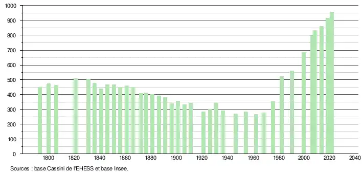 - Population municipale légale en vigueur au 1er janvier 2024, millésimée 2021, définie dans les limites territoriales en vigueur au 1er janvier 2023, date de référence statistique : 1er janvier 2021.