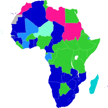 La carte ci-contre indique les différents pays d'Afrique dont la loi impose un âge pour la majorité sexuelle. Les lois des différents pays encadrent le type d'activité sexuelle (vaginale, sodomie, fellation) ainsi que le sexe des participants. L'âge à partir duquel une personne peut avoir des relations sexuelles sans être en infraction avec la loi apparaît en gras dans le texte. Cet âge est valable pour les deux sexes. D'autres variables comme l'homosexualité et/ou la sodomie, lorsqu'elles sont illégales, sont signalées si elles sont importantes. Lorsqu'il existe un/des cas particulier(s) propre(s) aux pays, il est/sont indiqué(s).