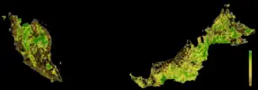 La déforestation est importante, en particulier dans les territoires du Sarawak et du Sabah.