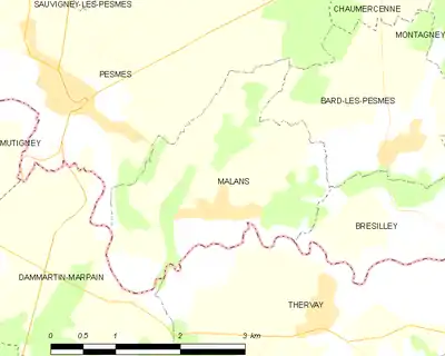 Avec la commune voisine de Bresilley, Malans est la commune la plus dans le sud de département de la Haute-Saône