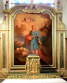 Autel et tableau de Saint-Mammès (Sceaux) - Chapelle Saint-Mamet, XIVe siècle, à Douville, Dordogne (Lieu-dit Pont-Saint-Mamet).