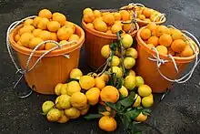 - Miyagawa (宮川), cultivée en Sicile, largement consommée en Corée. Bon rendement, bon goût, largement utilisée pour la culture en serre. En 1915 Sakamoto (préfecture de Fukuoka), Kenkichi Miyagawa a découvert une branche mutante dont les fruits remporte en 1916 le premier prix de la Station d'expérimentation agricole de Nakayama. En 1925 Tanaka la nome Miyagawa Wase Unshu. Mi-octobre à novembre[50]..jpg.webp) Owari Owari
