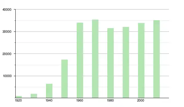 | 1960 | 33 934 | ▲ +95,81 % | |