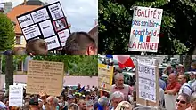 Le , plus de 100 000 personnes ont manifesté dans des communes de toute la France métropolitaine contre les mesures nationales incitant les citoyens à se faire vacciner pour freiner la diffusion du variant delta du coronavirus[29]. À Paris, des marches de protestation ont traversé différents quartiers de la ville. Des manifestations ont également eu lieu à Strasbourg, à Lille, à Montpellier et ailleurs[29].