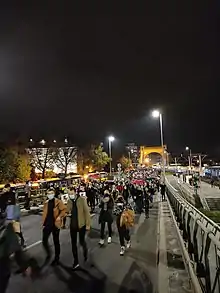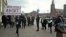 Les manifestations de 2020-2021 en Pologne, connues en Pologne sous le nom de Grève des femmes (polonais : Strajk kobiet), sont des manifestations et des protestations anti-gouvernementales qui se déroulent en Pologne depuis le contre une décision du tribunal constitutionnel, réformé par le parti conservateur Droit et justice (polonais : Prawo i Sprawiedliwość) (PiS)[35]. À l'initiative du parti Droit et Justice, qui domine la coalition électorale Droite unie et la vie politique polonaise, ce tribunal a durci la loi sur l'avortement en Pologne, de manière à rendre illégaux presque tous les cas d'avortement, y compris ceux dans lesquels le fœtus souffre d'un handicap grave et permanent, ou d'une maladie incurable et mortelle[36],[37],[38].