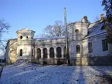 Le manoir et construit en 1760 et entièrement réaménagé et agrandi entre 1899 et 1902 en Modern Stil par l'architecte Rudolf von Engelhardt avec des éléments néorenaissance, comme l'entrée en forme de loggia italienne donnant sur le parc, l'ajout de tourelles et l'aspect des fenêtres à la florentine.