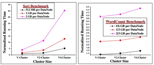 D'après une étude[7] de 2010 de l'Université nationale de Singapour, il existe cinq facteurs qui influent sur les performances du MapReduce.
