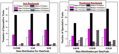 Pour réduire les temps de planification, il est possible de modifier la taille des blocs de données à distribuer aux nœuds du cluster. Si l'on augmente la taille des blocs de données, alors la planification sera plus rapide, car elle nécessitera moins de tâches map. Cependant, si l'on augmente trop la taille des blocs, alors le risque d'échec est plus important[14].
