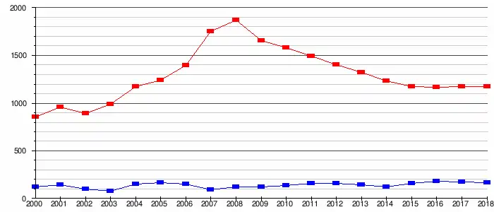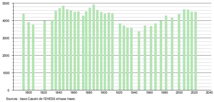 4 500 hab. (2021 en diminution de 1,16 % par rapport à 2015)
