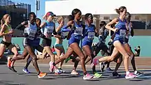 - Joyciline Jepkosgei a gagné ce marathon à son premier essai sur la distance de 42,2 kilomètres[3]. Elle a lâche Mary Keitany et la prive de sa cinquième sacre sur ce parcours.