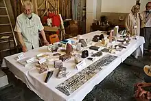 Échantillon de marbres pyrénéens avec les marbres de Saint-Béat au premier plan.